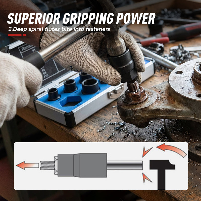 DISEÑO DE AGARRE SUPERIOR: las flautas en espiral profundas y inversas están diseñadas para morder y agarrar de forma segura tuercas y pernos redondeados, oxidados o pintados, proporcionando el máximo torque para una extracción confiable y sin esfuerzo.