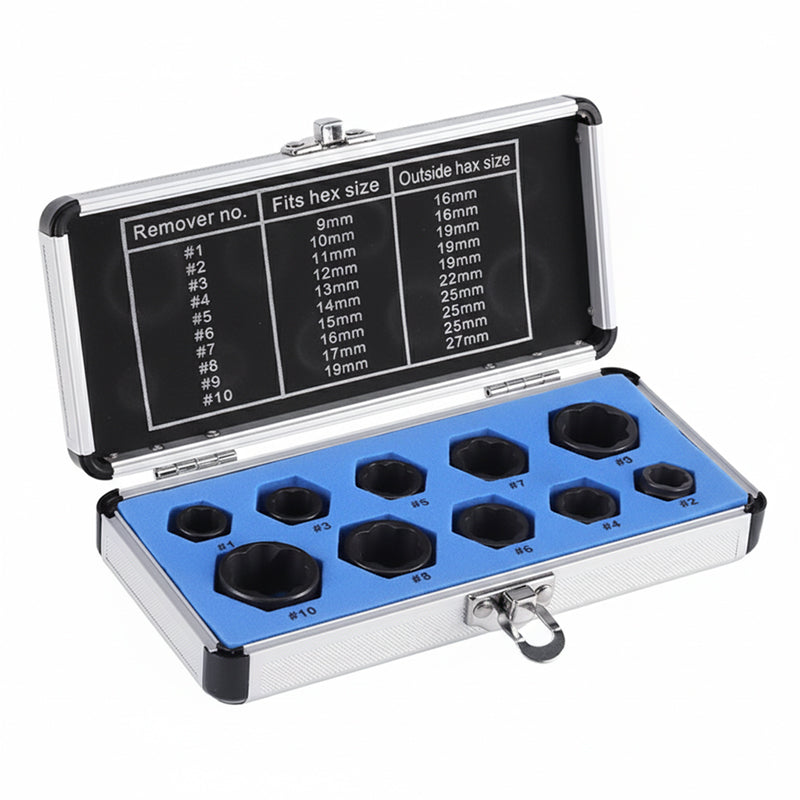 FÁCIL IDENTIFICACIÓN Y ALMACENAMIENTO: el juego viene en un estuche portátil y resistente con ranuras designadas para cada extractor. Las marcas de tamaño grabadas con láser en cada casquillo permiten una identificación rápida, lo que mejora su flujo de trabajo y su eficiencia.